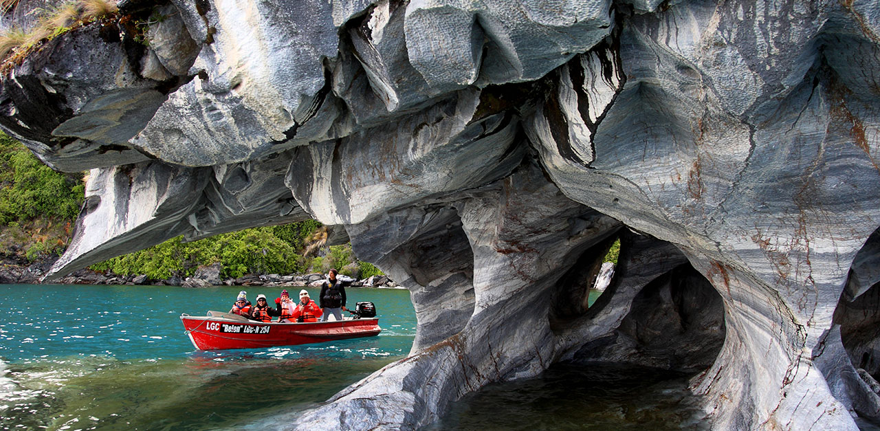 Departure from Coyhaique, heading to Puerto Tranquilo, located at south of the Austral Road. During our trip, we will observe endemic forests of Chile and cross a valley covered with ashes, due to the last eruption of the Hudson volcano. We will arrive to Puerto Tranquilo, where we will embark to sail on General Carrera Lake, and visit the Nature Sanctuary 'Marble Chapels'. This beautiful place was formed due to erosion caused by the lake in the limestone rocks, creating these amazing caverns. Then, we will head back for lunch to Puerto Tranquilo. Afterwards we will travel to the town of Cerro Castillo. Here, we will appreciate 6,000 year-old rock paintings made by Tehuelches, original people of the region. Finally, we will return to our hotel in Coyhaique or transfer to Puerto Guadal.